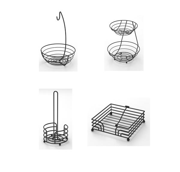 Fruit Holder+Paper Towel+Napkin Holder set ,powder coated in black