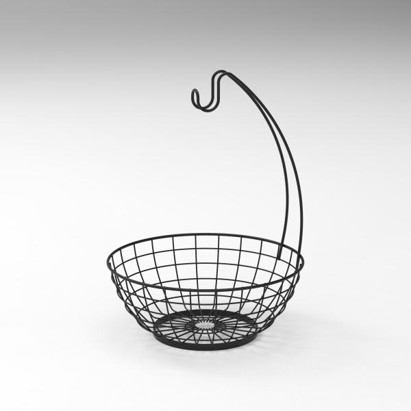 fruit basket with banana hanger , powder coated in black color