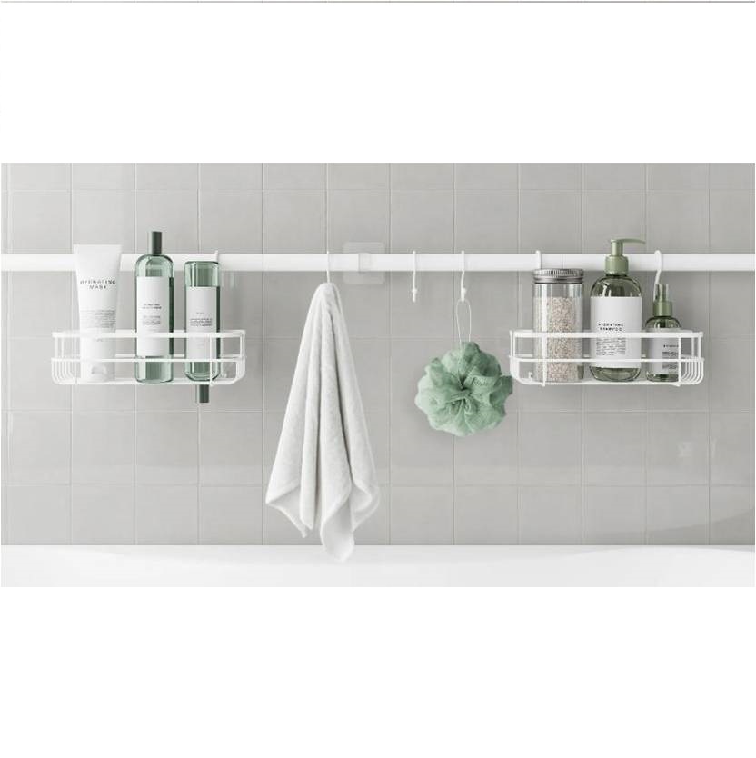 Tension Rod Bath Organizer Pole Caddy,powder coated in white