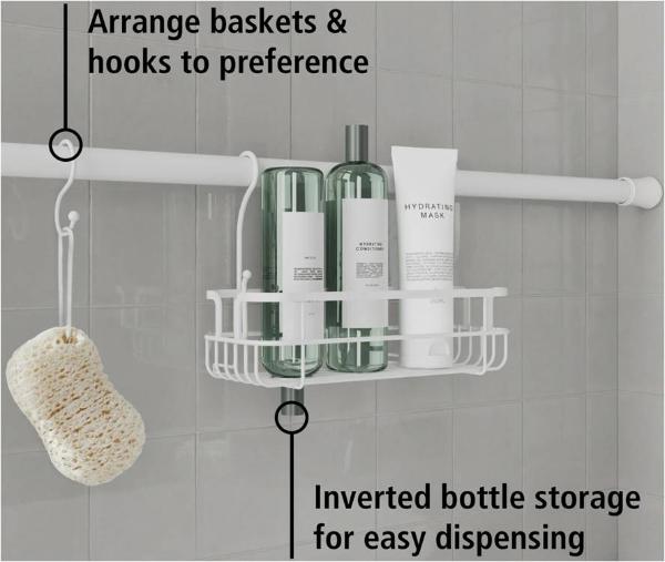 Tension Rod Bath Organizer Pole Caddy,powder coated in white
